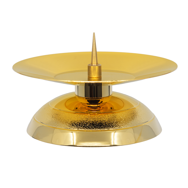 Chandelier d'autel en laiton verni avec un pied lisse. Sa hauteur est de 6 cm et sa coupe de 15 cm de diamètre.
