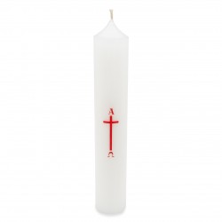 Le Cierge de baptême est allumé au cierge pascal et symbolise le lumière du Christ. Il est remis au baptisé à la fin de la cérémonie après le vêtement blanc.