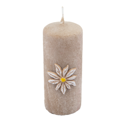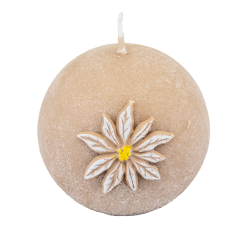 La bougie ANTON est de forme cylindrique. Son aspect velours avec sa fleur en relief représentant une édelweiss est très original. Elle est vendue sous une forme cylindrique ou une forme boule.