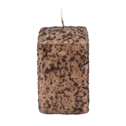 La bougie KRISTALL est fabriquée avec de la paraffine raffinée. Sa forme est carrée. La couleur chocolat est retrempée, l'intérieur de la bougie est blanche. Elle est recouverte de paillettes.