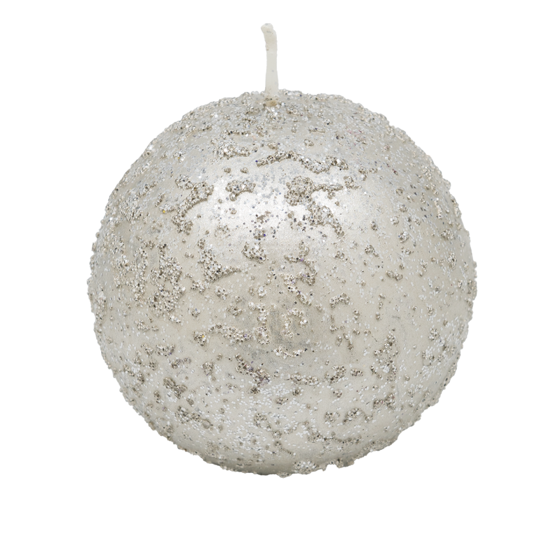 La bougie KRISTALL est fabriquée avec de la paraffine raffinée. Sa forme est ronde. La couleur argent est retrempée, l'intérieur de la bougie est blanche. Elle est recouverte de paillettes.