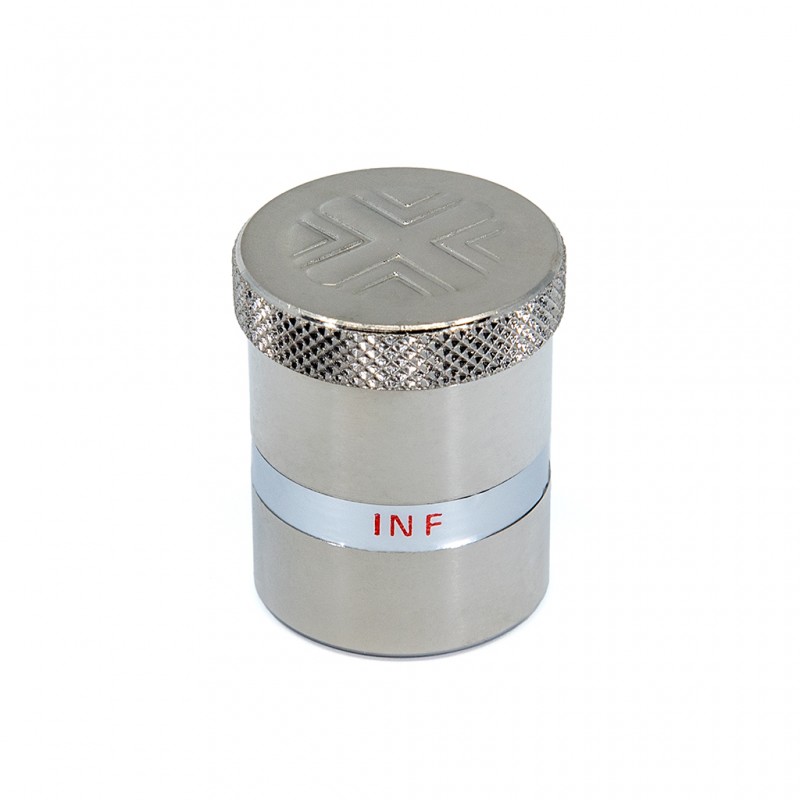 Ampoules Saintes Huiles simple. Hauteur 3.2cm, diamètre 2.6cm. Couvercle vissé, avec son étui