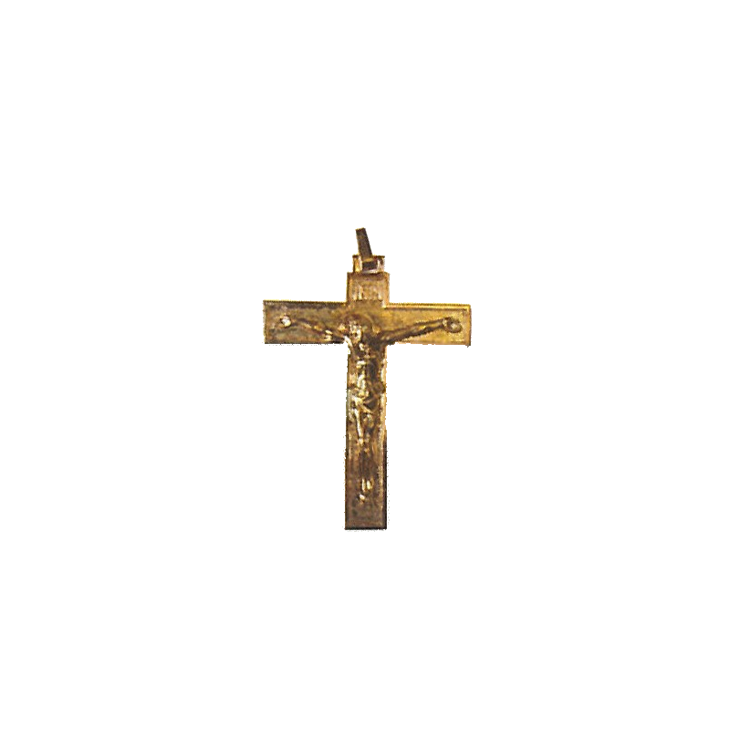 Croix d'aube en métal doré, Hauteur 80mm, avec le christ sur la croix et son cordon blanc